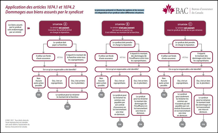 Le processus présenté ci-dessous (aussi disponible dans le microsite sur le règlement de sinistre en copropriété divise) illustre les options et les recours à la disposition d’un syndicat selon différentes situations.